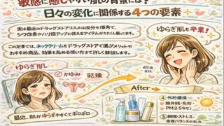 「敏感肌って生まれつきの肌質?」と思われがちですが、実は生活環境や体調の変化が関係してくることもあります。とくに「最近急に肌がデリケートに感じるようになった」という方は、日々の暮らしの中に、そのきっかけがあるかもしれません。