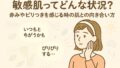 敏感肌とは、外からの刺激を受けやすく、赤みやかゆみ、ヒリヒリとした違和感を感じやすい肌状態のこと。